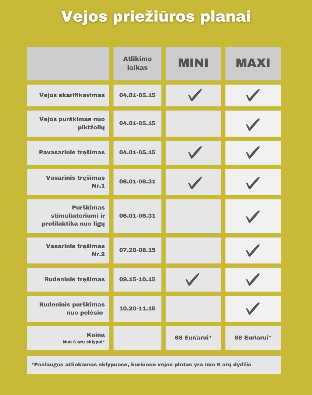 Viskas apgalvota už Jus, tereikia pasirinkti vejos priežiūros paslaugų planą ir džiauktis žalia, tankia veja visus metus.